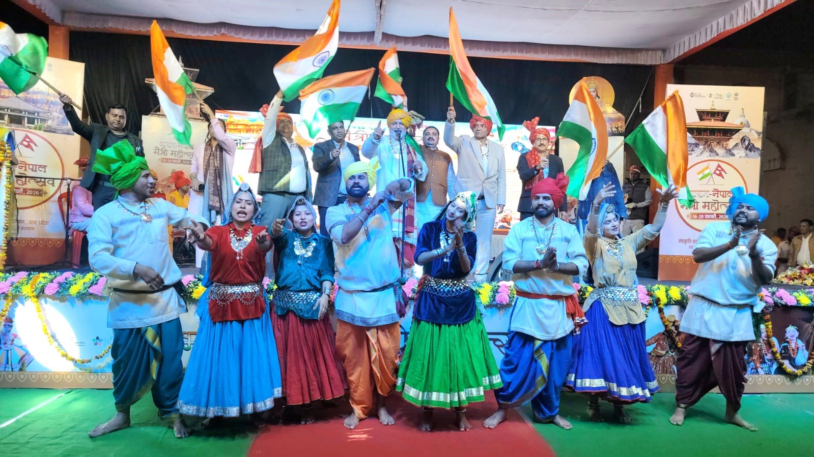 महोत्सव के नोडल अतुल द्विवेदी ने कार्यक्रम के उद्देश्य पर प्रकाश डाला। भारत-नेपाल की मैत्री कार्यक्रम के माध्यम से दोनों देशों को जोड़ने का प्रयास किया जा रहा है। कार्यक्रमों में लोक गायन सचिन अवस्थी लखीमपुर, लोक गायन वीना पाण्डेय लखनऊ, अवधी लोक नृत्य आरती मिश्रा तमाशा ग्रुप लखीमपुर, कठपुतली अजय मिश्रा लखीमपुर, लोक गायन रामापाल निषाद लखीमपुर, सात्विक बैंड शभाशीष उपाध्याय लखनऊ, थारू एवं मयूर नृत्य नेपाल आईसीसीआर प्रायोजित दल, चकरी नृत्य शिवनारायण चकरी राजस्थान आदि का प्रदर्शन किया गया। कार्यक्रम में मुख्य कलाकार पद्मश्री महावीर गुड्डू हरियाणा द्वारा प्रस्तुत बमलहरी ने दर्शकों को भावविभोर कर दिया। राजस्थान के कलाकारों द्वारा घूमर एवं चकरी नृत्य की आकर्षक प्रस्तुतियां दी गई। सभी कलाकारों ने अपनी उत्कृष्ट प्रस्तुतियां से दर्शकों का मनमोह लिया और भारत-नेपाल की सांस्कृतिक एकता का सजीव प्रदर्शन किया। कार्यक्रम के अन्त में महोत्सव के नोडल अतुल द्विवेदी द्वारा उपस्थित अतिथियों, समस्त कलाकारों एवं दर्शकों के प्रति आभार व्यक्त करते हुए धन्यवाद ज्ञापित किया गया।