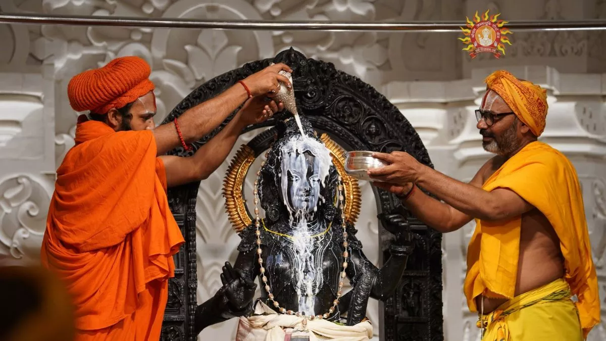 श्री राम जन्मभूमि तीर्थ क्षेत्र ने ट्वीट किया, "श्री राम नवमी की पावन बेला में आज, श्री राम जन्मभूमि मंदिर में प्रभु श्री रामलला सरकार का दिव्य अभिषेक किया गया।।" pic.twitter.com/XN2ZwykkDU